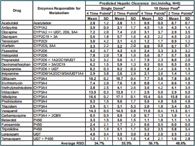 Table 1. Comparison of Predicted Hepatic Clearance Values for SingleDonor or 10-Donor Pooled Hepatocytes Using Either 2 or 4 Time Points