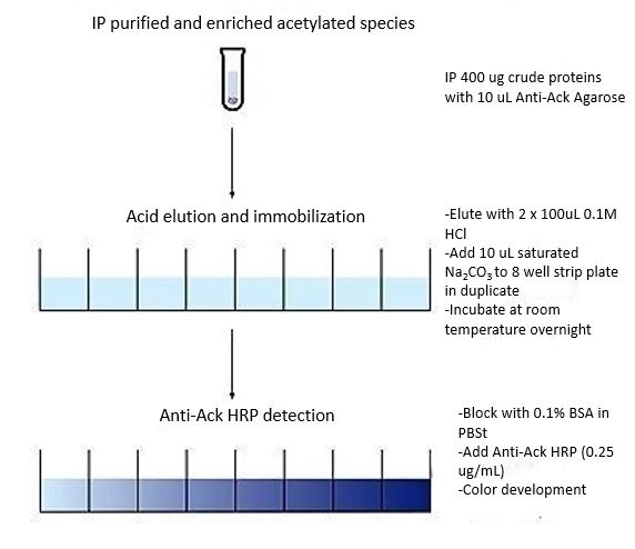 5) 在37℃下添加HRP標(biāo)記的抗乙酰化抗體(ICP0381)用0.1%BSA in PBSt稀釋到0.25 ug/Ml,孵育30分鐘。