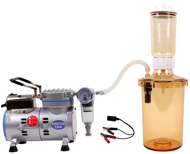 1.野外地表水的采樣過濾:由于需要攜帶外出使用,輕便和耐摔就是對于抽濾瓶基本要求。太重不易攜帶,增加運輸成本;而玻璃、陶瓷材料的布氏漏斗不耐摔就有可能在運輸途中損壞,影響了正常采樣過濾。所以外出攜帶使用R300P-DC這款配置了塑料過濾瓶的型號就非常合適。