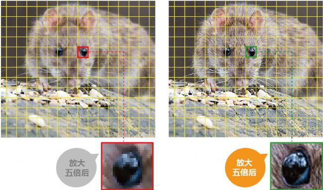 圖a、右邊照片的圖像分辨率優(yōu)于左邊的照片