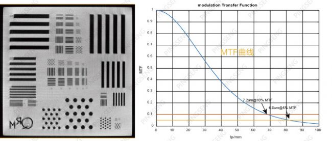 在高對(duì)比度情況下,能區(qū)分相臨最小物體的能力,所以也稱高對(duì)比度分辨率,受系統(tǒng)幾何參數(shù)的影響,決定了影像的清晰度。