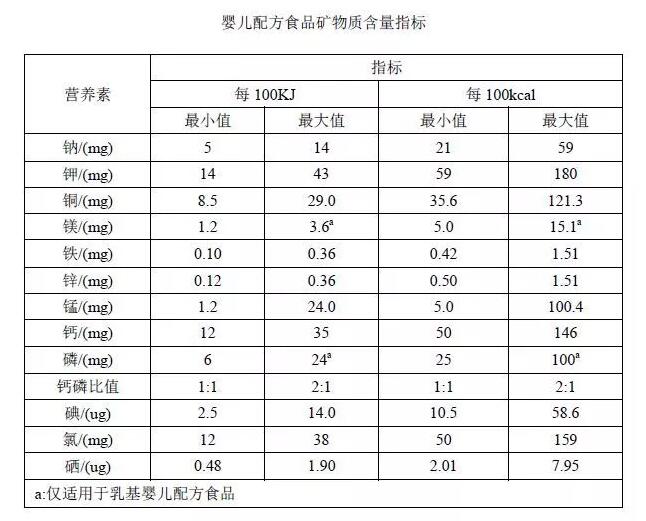 嬰幼兒配方食品及輔助食品等礦物質(zhì)、重金屬限量及檢測標(biāo)準(zhǔn)