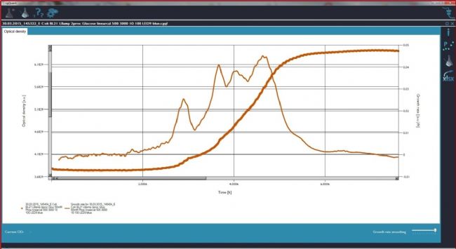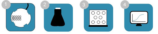 CGQ 系統(tǒng)可以用于多種科學應(yīng)用:生長曲線指引的蛋白表達;培養(yǎng)基開發(fā)/優(yōu)化;菌種篩選/比較;監(jiān)測限制因素以及染菌;分析生長動力學曲線;優(yōu)化培養(yǎng)條件;在線監(jiān)測嗜熱微生物等