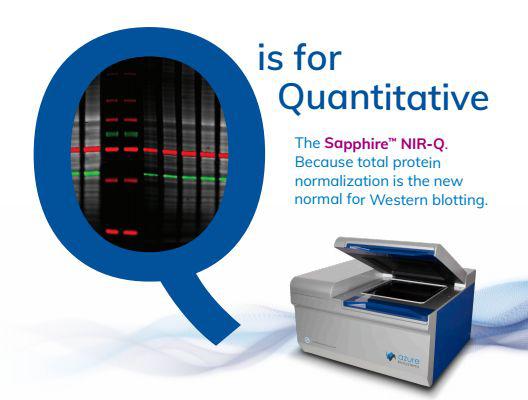 Azure Biosystems™的Sapphire™NIR-Q多功能激光生物分子成像系統(tǒng)具有兩個用于近紅外熒光檢測(700nm和800nm)的通道和用于檢測總蛋白專用的第三通道,使多重Western blotting標準化變得輕而易舉。