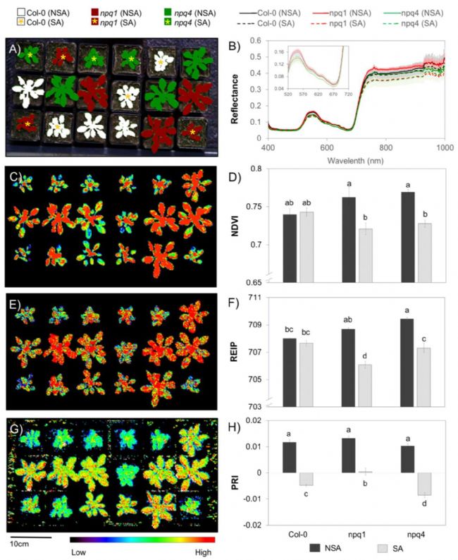 Specim公司與德國波恩大學等機構(gòu)合作,利用Specim IQ高光譜成像儀,對作物病害與表型進行了研究分析,并發(fā)表論文“Specim IQ: Evaluation of a New, Miniaturized Handheld Hyperspectral Camera and Its Application for Plant Phenotyping and Disease Detection”(Sensor, 2018)