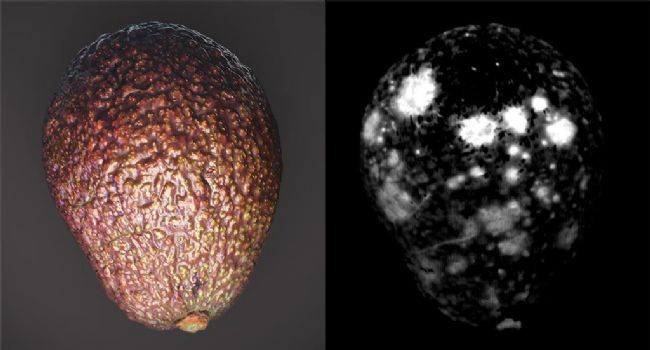 由于視覺變化不明顯,牛油果的食用品質(zhì)和商業(yè)價(jià)值難以預(yù)測(cè)。然而,Specim高光譜成像儀即可通過光譜曲線的變化,檢測(cè)和預(yù)測(cè)肉眼看不到的變化,并建立預(yù)測(cè)模型應(yīng)用于水果及其部位的缺陷檢測(cè)。