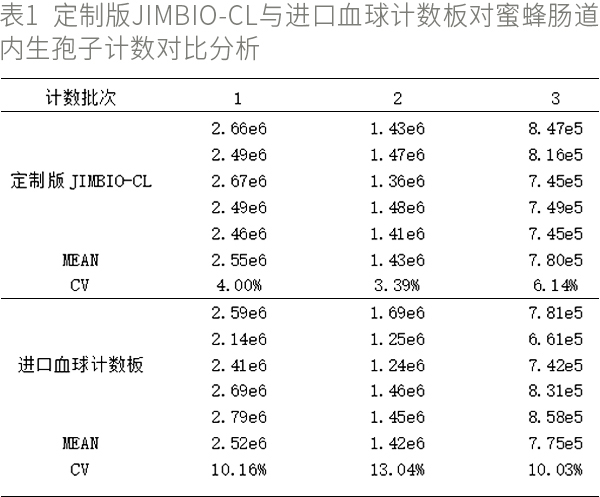 從表1中可以看出,定制版JIMBIO-CL測試結(jié)果與計數(shù)板統(tǒng)計相比,平均濃度基本一致,由于定制版JIMBIO-CL為10微升樣本全計數(shù),測試結(jié)果波動較小,穩(wěn)定性明顯優(yōu)于進口血球計數(shù)板。
