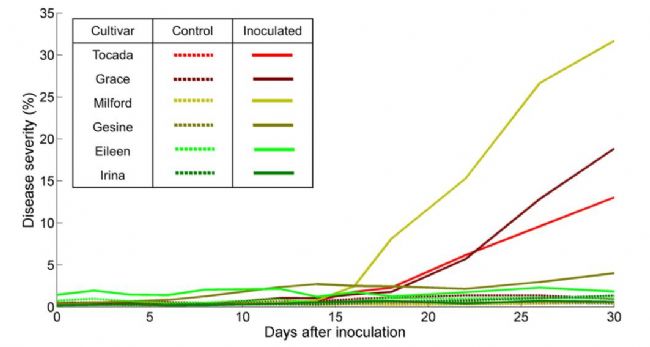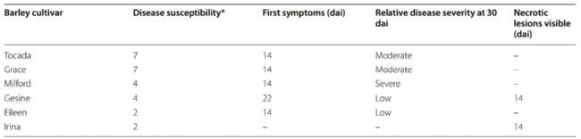 表1在實驗過程中對每個大麥品種疾病進行的人工評級(2016; - 表示無癥狀)