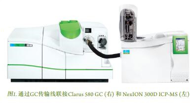 使用PerkinElmer® Clarus 580氣相色譜與NexION 300D電感耦合等離子體質(zhì)譜儀(ICP-MS) 聯(lián)用進行實驗的分析工作, GC與ICP-MS的連接通過PerkinElmer GC/ICP-MS傳輸線實現(xiàn)(見圖1) 。 將配有一個內(nèi)失活毛細管柱的Silcosteel®管傳輸線插入到石英炬管和中心管中。 對干式等離子體條件下儀器工作條件(如: 內(nèi)失活的毛細管柱的距離、 Ar氣組成和氧氣(O2) 流速) 的優(yōu)化進行了評價。 使用一臺SP-D Discover聚焦微波系統(tǒng)(CEM公司, 美國北卡羅萊納州馬修斯)從基質(zhì)中提取有機錫。 儀器操作條件詳見表1。 使用NexION ICP-MS和 Chromera® CDS軟件完成數(shù)據(jù)的收集和分析。