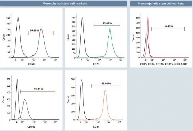 Figure 6: Flow cytometry analysis of hMSC markers after long-term expansion on Eppendorf CCCadvanced FN1 motifs surface in an animal-component-free environment