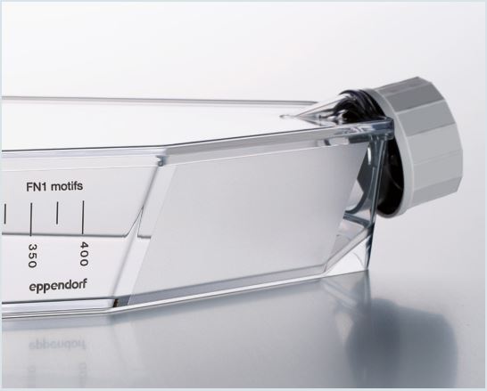 The novel Eppendorf CCCadvanced™ FN1 motifs surface represents a completely synthetic cell adhesion-pro moting growth surface for the long-term cultivation of hMSCs in xeno-free and restrictive culture conditions, providing a defned culture system without any animal and human components. This ready-to-use surface is made up of fbronectin-derived motifs to support cell attachment in various serum-free media by mimicking native extra-cellular matrix proteins without additional preparation of the surface.