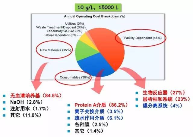 (10g/L表達(dá)量、15000升培養(yǎng)規(guī)模的成本分布)