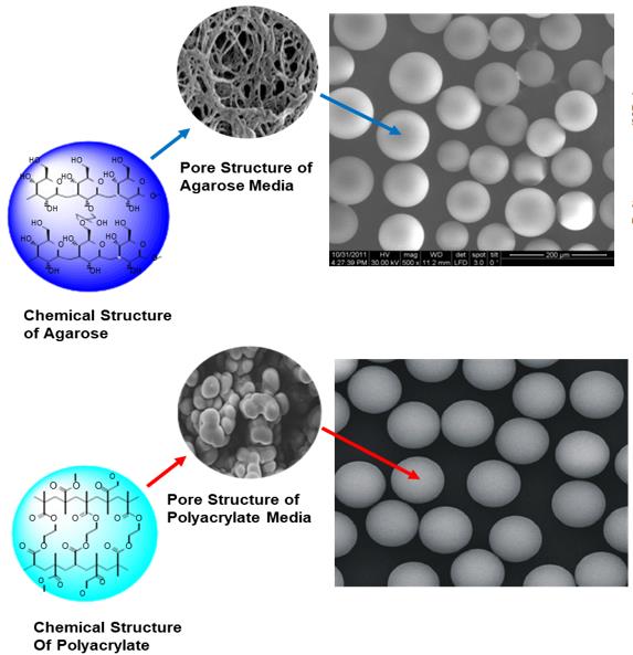 聚合物和碳水化合物基質(zhì)的Protein A親和層析介質(zhì)形貌對(duì)比圖
