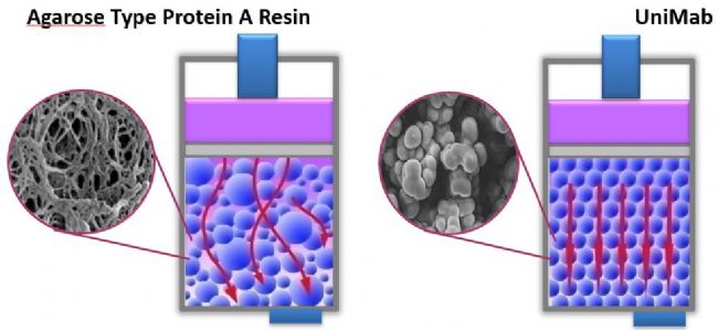 單分散UniMab®和多分散軟膠基質(zhì)介質(zhì)洗脫示意圖