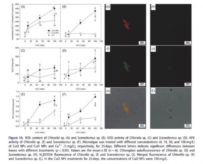 CuO NPs處理后藻細(xì)胞內(nèi)活性氧和抗氧化酶活的變化及活性氧的具體產(chǎn)生位點(diǎn)