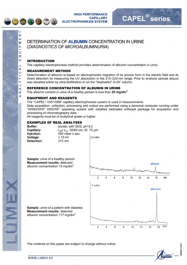 尿液中白蛋白的測(cè)定-LUMEX毛細(xì)管電泳法