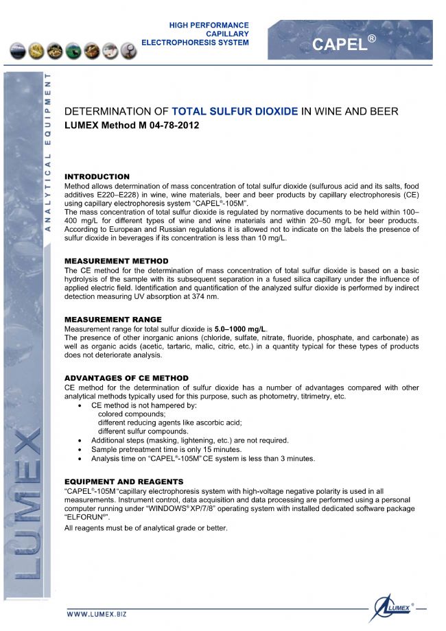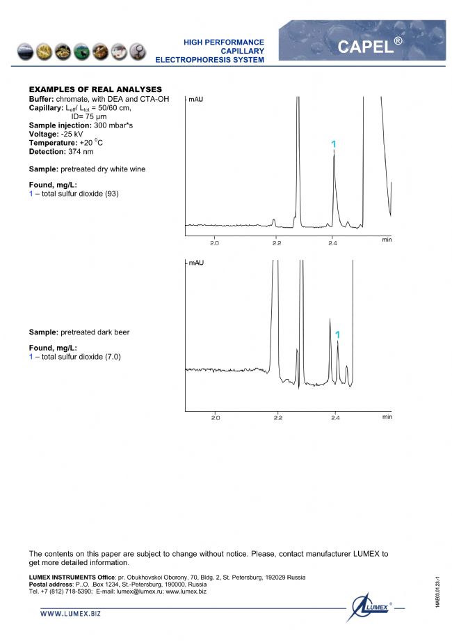 葡萄酒和啤酒中二氧化硫的測(cè)定-LUMEX毛細(xì)管電泳法