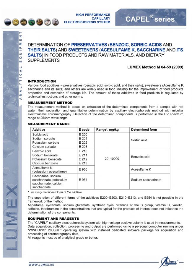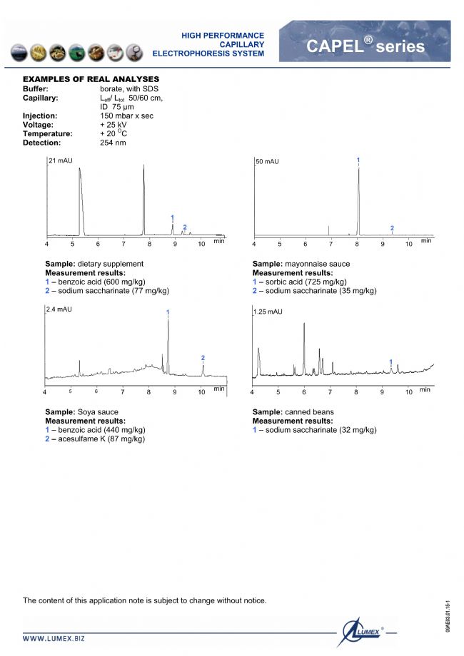 食品和膳食補(bǔ)充劑中防腐劑、甜味劑的測定-LUMEX毛細(xì)管電泳法