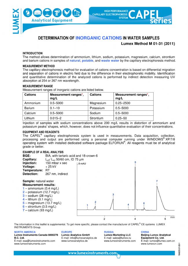 水中無機陽離子的測定-LUMEX毛細管電泳法