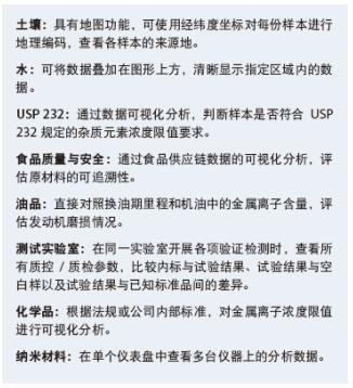 TIBCO Spotre® 軟件無(wú)機(jī)元素分析系統(tǒng)設(shè)計(jì)有多個(gè)儀表盤(pán),用于快速、高效地解析并生成交互式無(wú)機(jī)元素?cái)?shù)據(jù)圖形。預(yù)置儀表盤(pán)包括:土壤、水質(zhì)、USP 232、食品質(zhì)量與安全、油品(機(jī)油)、檢測(cè)實(shí)驗(yàn)室、化學(xué)品與納米材料分析儀表盤(pán)。