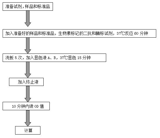 本試劑盒采用的是生物素雙抗體夾心酶聯(lián)免疫吸附法(ELISA)測(cè)定樣品中大鼠1,25二羥基維生素D3(1,25-(OH)2D3)水平。向預(yù)先包被了大鼠1,25二羥基維生素D3(1,25-(OH)2D3)單克隆抗體的酶標(biāo)孔中加入大鼠1,25二羥基維生素D3(1,25-(OH)2D3),溫育;溫育后,加入生物素標(biāo)記的抗1,25二羥基維生素D3(1,25-(OH)2D3)抗體。再與鏈霉親和素-HRP結(jié)合,形成免疫復(fù)合物,再經(jīng)過(guò)溫育和洗滌,去除未結(jié)合的酶,然后加入底物A、B,產(chǎn)生藍(lán)色,并在酸的作用下轉(zhuǎn)化成最終的黃色。顏色的深淺與樣品中大鼠1,25二羥基維生素D3(1,25-(OH)2D3)的濃度呈正相關(guān)。