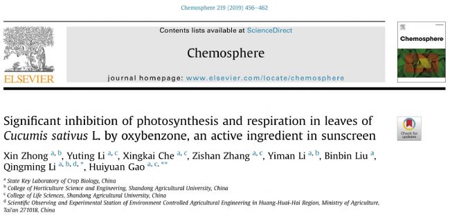 利用MPEA和氧電極首次證明防曬霜有效成分“氧苯酮” 嚴(yán)重抑制高等植物葉片光合&呼吸作用
