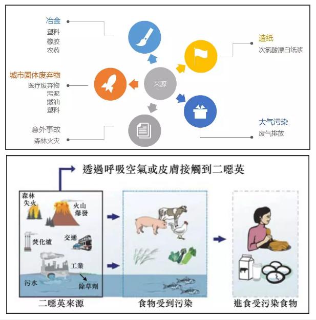 廢物焚燒爐,包括:城市生活廢物、危險(xiǎn)廢物、醫(yī)療廢物或下水道中污物的多用途焚燒爐;燃燒危險(xiǎn)廢物的水泥窯;以元素氯或可生成元素氯的化學(xué)品為漂白劑的紙漿生產(chǎn);冶金工業(yè)中的下列熱處理過(guò)程;銅的再生生產(chǎn)、鋼鐵工業(yè)的燒結(jié)工廠、鋁的再生生產(chǎn)、鋅的再生生產(chǎn)。還有露天焚燒廢物,包括填埋場(chǎng)的焚燒,住戶燃燒源。幾乎可以說(shuō),有燃燒的地方都會(huì)產(chǎn)生二噁英。