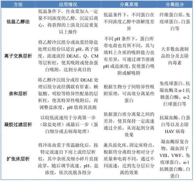表3 血液制品層析純化應(yīng)用情況