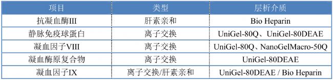 表4 納微科技單分散層析介質(zhì)血液制品純化推薦