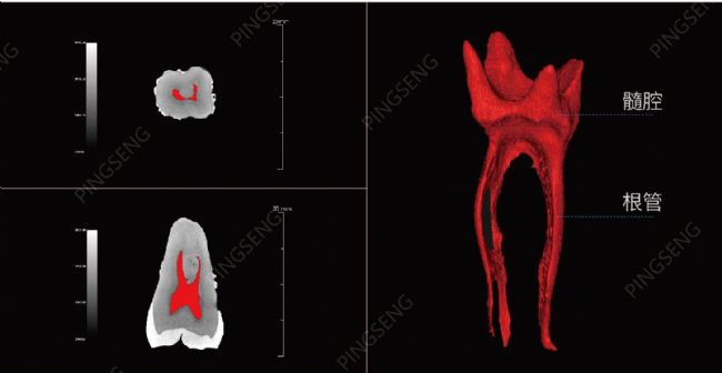 根管是一種孔隙,這種在牙齒中間的低密度空間對牙髓病的研究起了可探索的方向。顯微CT在牙科填料的研究上,特別適用于三維定量評價根管充填物。