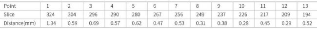表1:具體切片層上測得的牙槽到齦緣的距離。
