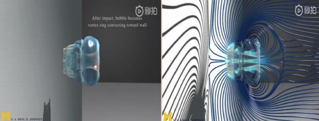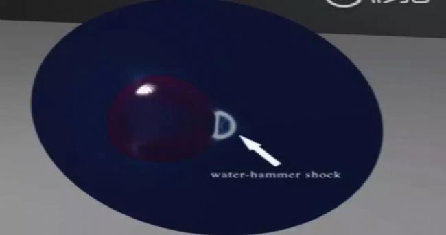 高速微射流對(duì)遠(yuǎn)端氣泡一側(cè)的沖擊產(chǎn)生水錘沖擊,即沖擊波。