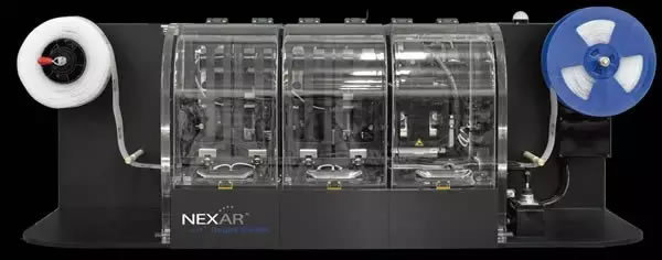 Nexar高通量吸取樣品DNA和引物、mix至384孔卷帶并封膜。Soellex對(duì)封膜完成的卷帶進(jìn)行PCR水浴熱循環(huán),每次最多可達(dá)230,000個(gè)樣本。Araya對(duì)水浴完成的卷帶掃描分析,28秒掃描一張卷帶。