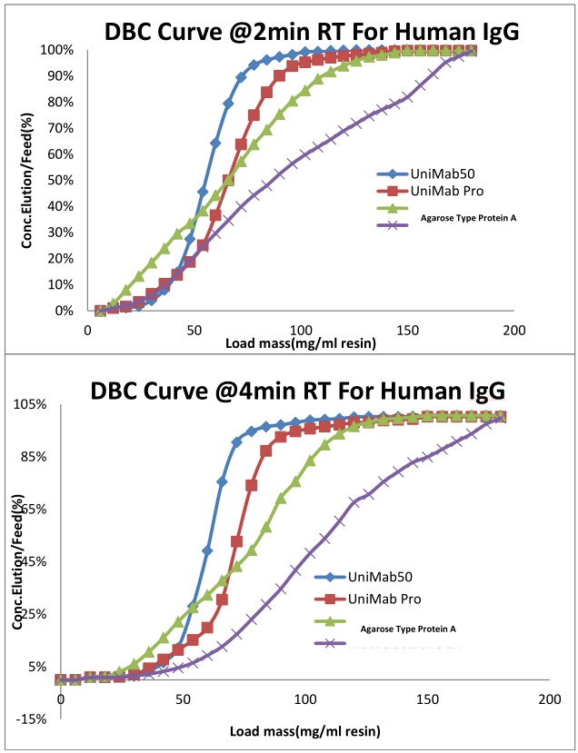 單分散 UniMab® 特色二:動態(tài)載量穿透曲線圖