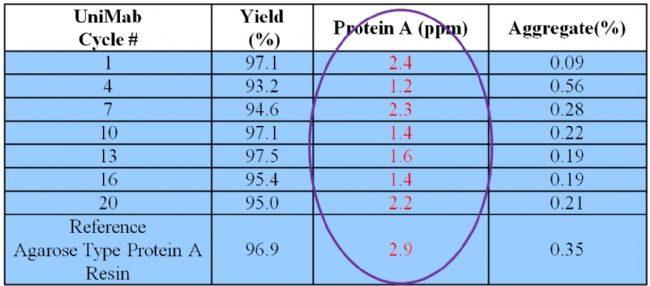 單分散 UniMab® 特色四:配基鍵合穩(wěn)定,循環(huán)使用較少脫落