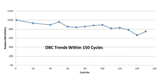 如圖,UniMab Protein A親和層析介質在10%的流穿條件下,經過100次循環(huán)使用后,其動態(tài)結合載量依然能保持在90%左右。這樣一來不僅能明顯降低客戶的生產成本,也從側面更好地印證了UniMab親和填料的配基鍵合穩(wěn)定,脫落極低,能夠更好地確保純化生產穩(wěn)定有序地進行。