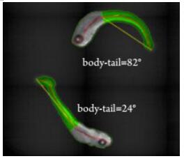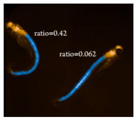圖4:單一熒光染料,計算確定斑馬魚頭部/尾部比例