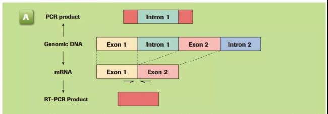 為了避免基因表達(dá)過程中檢測(cè)到DNA,設(shè)計(jì)應(yīng)盡量跨內(nèi)含子區(qū),這可確保擴(kuò)增的產(chǎn)品只能使用mRNA作為模板。