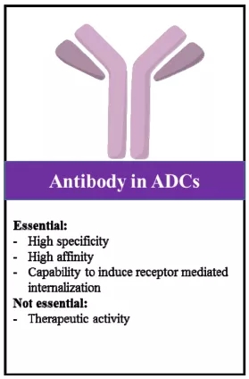 ADCs藥物的靶向性來(lái)自其中抗體部分(antibody),毒性大部分來(lái)自小分子化藥毒物部分(payload),抗體部分也可以自帶毒性(ADCC與CDC)?贵w部分與毒素部分通過(guò)連接物(linker)互相連接?贵w部分與腫瘤細(xì)胞表面的靶向抗原結(jié)合(binding)后,腫瘤細(xì)胞會(huì)將ADC內(nèi)吞(endocytosis)。之后ADC藥物會(huì)在溶酶體中分解(lysosomal degradation),釋放出活性的化藥毒物,破壞DNA或阻止腫瘤細(xì)胞分裂,起到殺死細(xì)胞的作用。理想化的連接物應(yīng)該保持穩(wěn)定所以不會(huì)導(dǎo)致靶外毒性(off-target toxicity),并且在細(xì)胞內(nèi)高效釋放毒物。