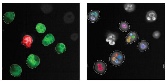 MDCK細胞團培養(yǎng)24-72h后進行染色,對不同Z軸層面(共8層,每層間隔2μm)成像后采用最大投影模式進行顯示和分析,應(yīng)用機器自學(xué)習(xí)模塊對細胞極化進行自動檢測,并在此基礎(chǔ)上計算形成的內(nèi)腔數(shù)量。