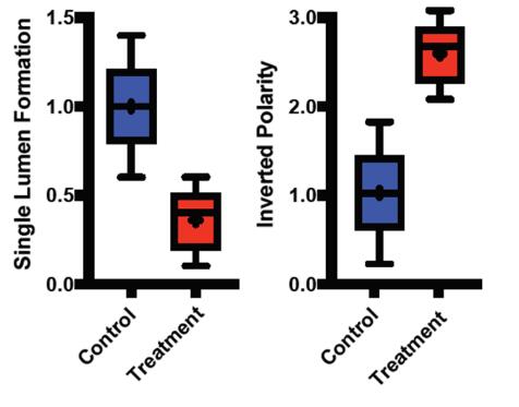 最后使用高內(nèi)涵的分析功能模塊對細胞的極性變化和形成的管腔數(shù)量直接進行統(tǒng)計分析。