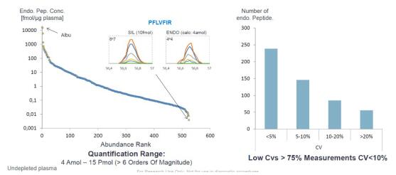 圖4. 采用SureQuant定量流程對(duì)未進(jìn)行高豐度蛋白去除的血漿樣品進(jìn)行定量分析