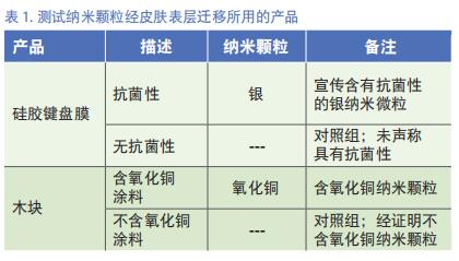 本項研究中,我們檢測了兩種不同的消費品:含銀硅膠鍵盤膜和噴涂了含氧化銅涂料的木塊(表 1)。為了評估這些產(chǎn)品上納米微粒的傳輸情況,我們結(jié)合使用了兩種抹布和合成汗水 2 。使用不同的抹布是為了最大程度地減少銀和銅的背景值:銀背景值較小的抹布用于檢測銀納米微粒,而另一張銅背景值較小的抹布則是檢測銅納米顆粒的更佳選擇。