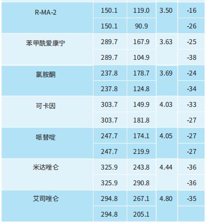 以下參數(shù)以PerkinElmer QSightTM 210 三重四極桿質(zhì)譜儀為例,目標(biāo)化合物質(zhì)譜參數(shù)見表2和表3.