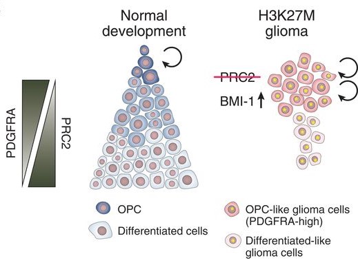 當然,即使發(fā)現(xiàn)了這些獨特的亞群,它們的功能和臨床意義也是很難確定的。不過,有兩種重要的方法可以進一步分析這些亞群:1.大型列隊的研究可以揭示亞群存在和頻率與臨床特征(例如存活,轉(zhuǎn)移和藥物反應)之間的統(tǒng)計關(guān)聯(lián)。但是考慮到大樣本進行scRNA-seq的成本問題,目前相對可行的方法是利用已有可用的測序數(shù)據(jù)集(常規(guī)RNA測序或者單細胞測序),利用計算方法來找到數(shù)據(jù)特征和腫瘤的關(guān)聯(lián);2.利用scRNA-seq數(shù)據(jù),結(jié)合這些亞群的詳細細胞表型來鑒定能夠區(qū)分這些亞群的標記,同時在動物或者模型中做進一步的功能研究。最新的一些scRNA-seq研究就發(fā)現(xiàn)腫瘤表達譜與正常發(fā)育細胞之間的相似性,提出了關(guān)于腫瘤起源和其中發(fā)生的持續(xù)分化過程的具體假設。像人類圖譜計劃(HCA)這樣的對腫瘤,正常組織和發(fā)育過程進行scRNA-seq的研究,在未來將會做的更多更廣,也將有更多的發(fā)現(xiàn)。比如,對H3-K27M midline膠質(zhì)瘤的scRNA-seq發(fā)現(xiàn)惡性細胞與少突膠質(zhì)細胞前體細胞(OPCs)之間的相似性,與之前文獻報道的OPCs是該腫瘤的起源候選細胞結(jié)論一致。此外,惡性細胞和正常細胞之間的比較不僅突出了它們之間的相似性,還提供了腫瘤細胞和其假定的起源細胞之間差異的詳細數(shù)據(jù),增進了我們對致癌過程的理解。