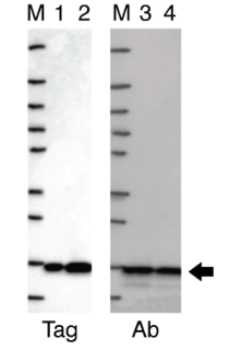 還可以通過表達具有親和標簽(例如FLAG或v5)或熒光蛋白(例如GFP或YFP)的蛋白質(zhì)來驗證抗體。然后可以使抗體表達與另一種方法的表達相匹配,但是這種方法局限性在于最好標記內(nèi)源基因。值得注意的是過表達目標蛋白可能會人為地淹沒脫靶結(jié)合,然后無法驗證抗體。