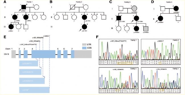 Fig.1 4個常染體顯性的HSP家系中,發(fā)現了UBAP1基因的無義突變。