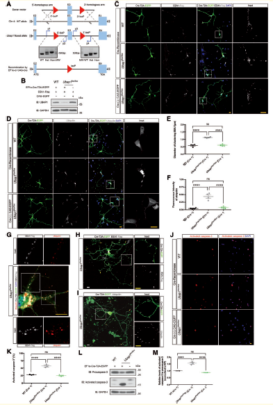 并且作者發(fā)現,在Ubap1敲除的神經元軸突區(qū)域,發(fā)現了神經元凋亡的病理特征。