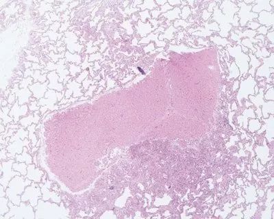 H&E染色肺:含有肝的碎屑,在取材過程中被污染的。