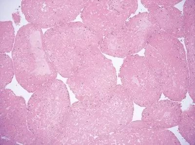 新鮮的或者固定不充分的組織在脫水過程中使用泡沫活檢墊,活檢墊會對組織產(chǎn)生局部壓力,導(dǎo)致細胞結(jié)構(gòu)變化,形成可見的三角空間結(jié)構(gòu)。